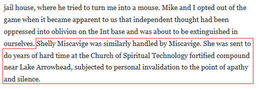 --David Miscavige being caught red-handed on the last public interview he did on national TV with Ted Koppell ("Nightline" interview in 1992). In that interview Miscavige "manufactures" (Hubbard's word in scripture) damning allegations and pretends they are fully documented and provable facts. In Miscavige's moment of meltdown he rants about "proof" that "psychs" were creating a "Siberian" facility to incarcerate, torture and kill innocent people. For good measure, he also throws in lurid charges that the US federal government was infiltrating Scientology and "murdering" Scientologists.